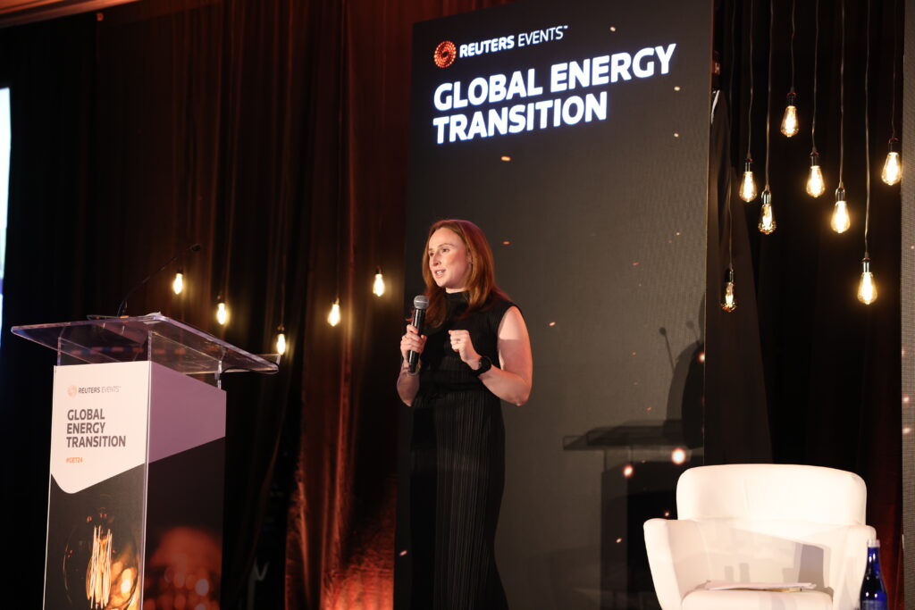 Pictured above: Pilar Carvajo Lucena speaking on stage. (Photo: Energy Tech Summit)